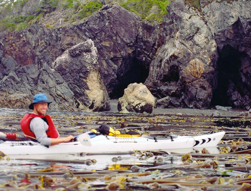 Eric is resting in his kayak on a kelp-bed near some sea caves. Should we land and explore? Back to Main Page
