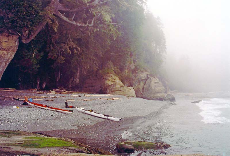 As the fog moved in, it was hard to find safe places to land; we lucked out here at the mouth of a creek Back to Main Page