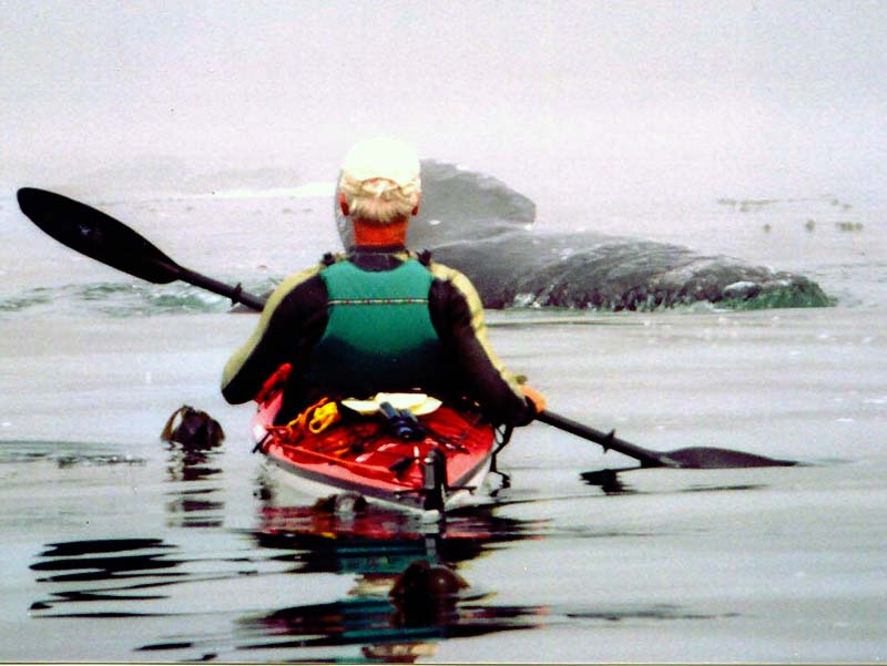 In the fog we could hear the whales surfacing before we could see them; this was a close encounter Back to Main Page