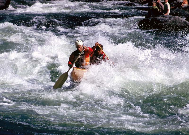 In '69 the National Slalom Championship was held on the Wenatchee: my friend Heinz Poenn and his partner in the C-2 race. Back to Main Page